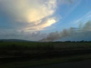 Yesterday during an evening drive I was witness to a gorgeous sunset, but as we traveled west, it became marred by a large plume of smoke. As we approached the area, it became clear that a farmer was burning a crop. I was told it was sugar cane. Why would a farmer burn sugar cane, I wondered.