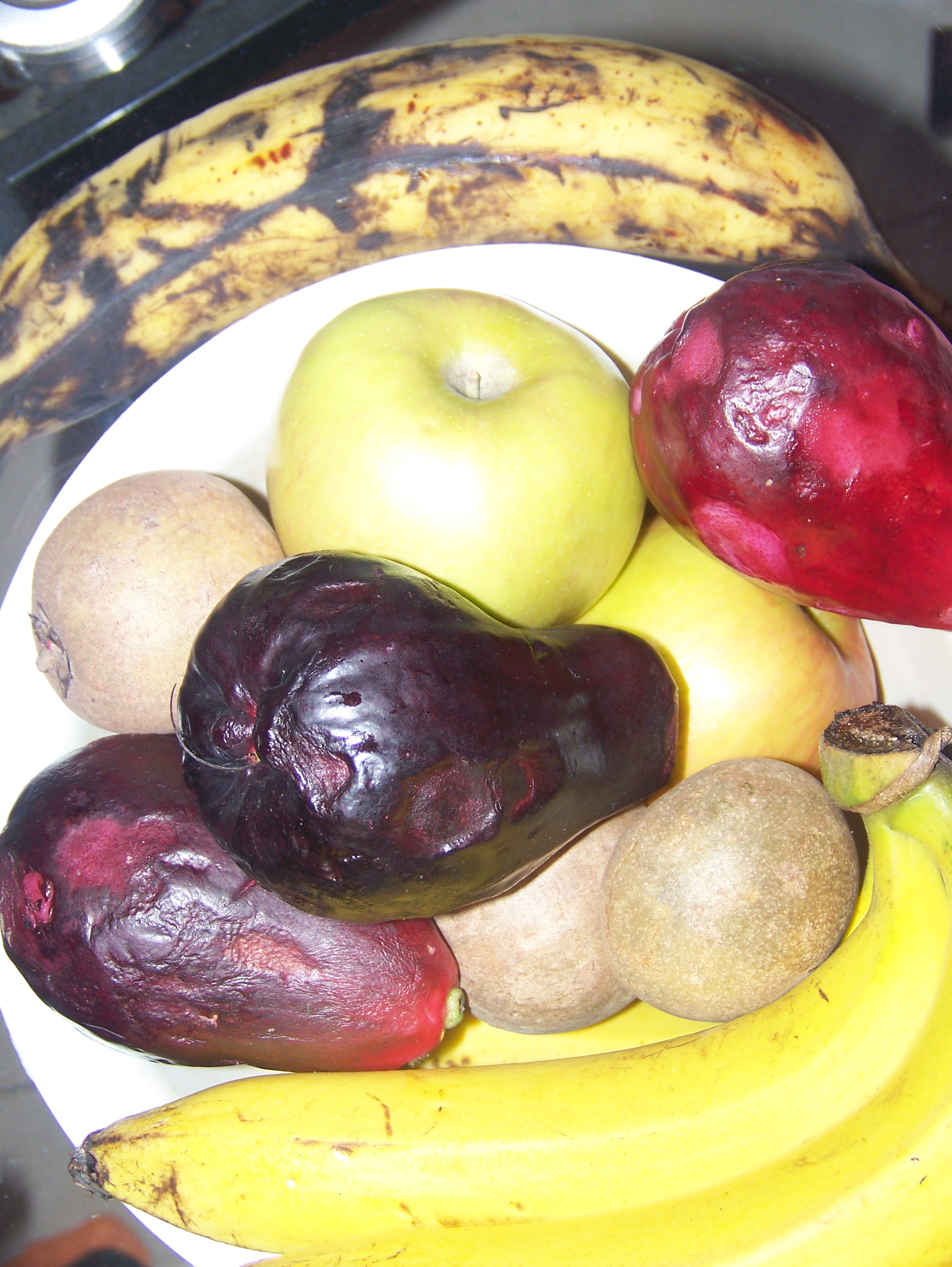 Friday fruit Posted on April 11, 2014 by Kate Chappell Friday fruit from a friend. Plantain, banana, tahiti apple, regular apple and naseberry. Enjoy your day. Share this:TwitterFacebookMoreRedditTumblrPinterestPrintLinkedInEmailLike this:Like Loading... Related