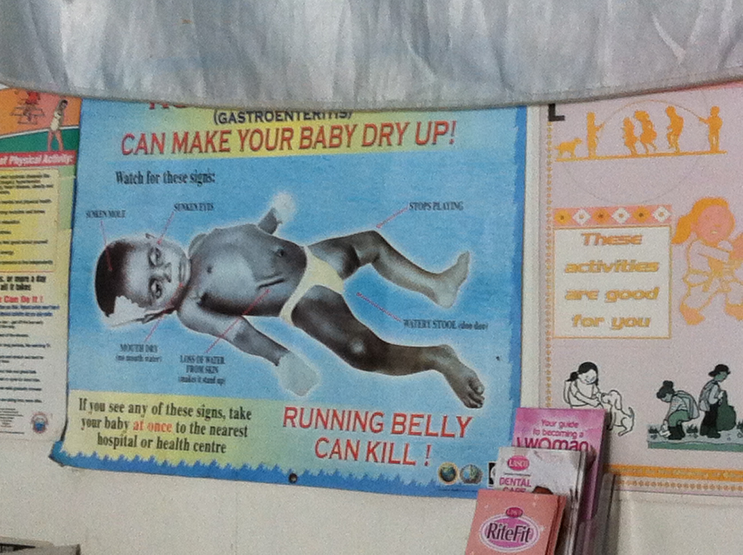 In any case, at this rural clinic, this worn, faded and dated poster caught my eye. It is informing people about the dangers of gastrointestinal disorders. Seems emblematic of the situation somehow.