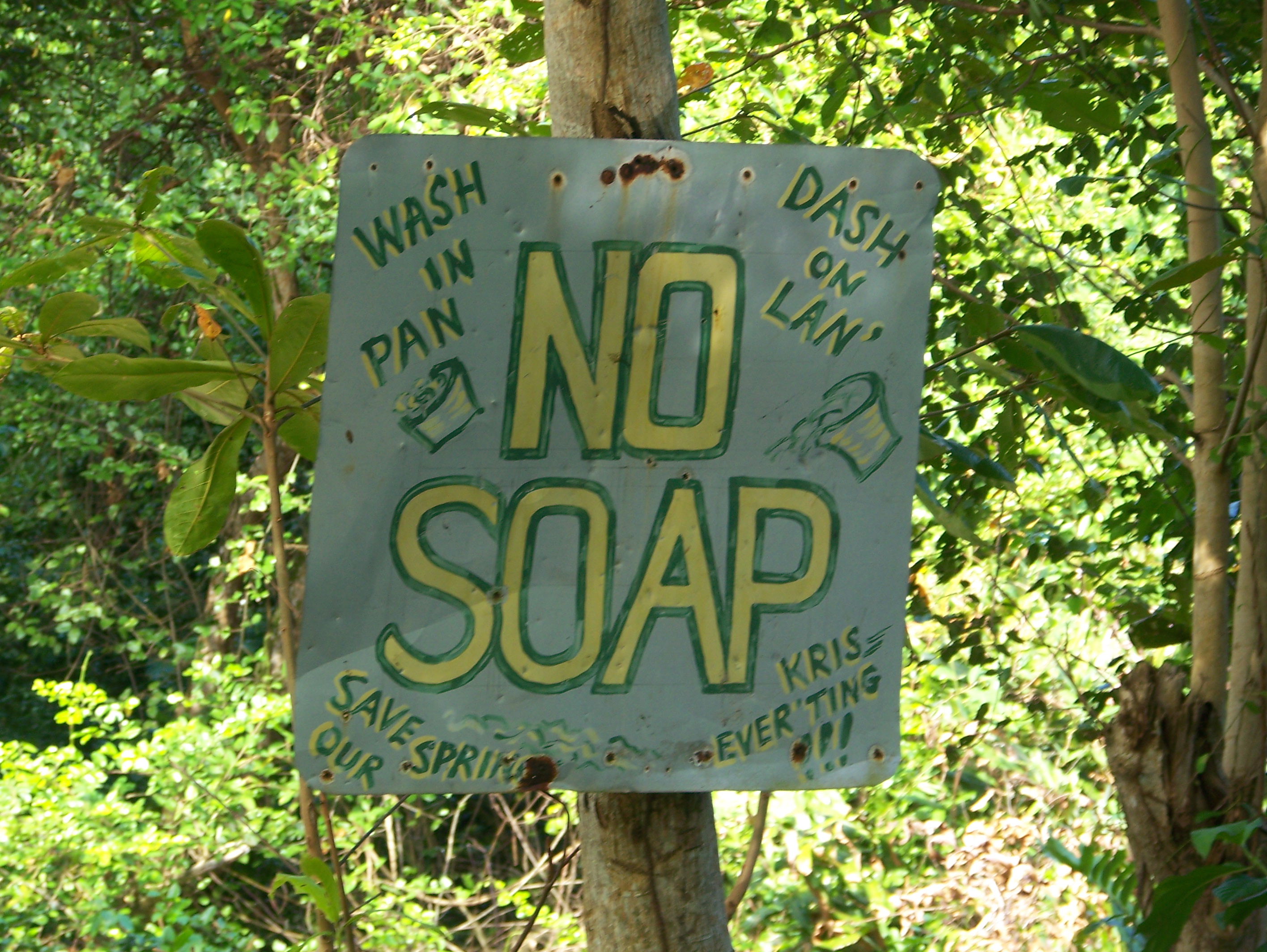 1. When we first used to go to Winifred Beach the spring was much bigger. It got badly degraded because people were using it not only to bathe but to do their washing. So all the detergents and chemicals were going into the sea and damaging the reef too. I was glad to see the sign up and don’t think people do it any more. If you have ever bathed in the spring, it is very cold but rich with minerals (you can smell a kind of sulphur smell). Incredibly reviving and probably good for chik v pains!! πŸ™‚