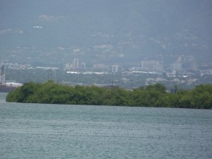 This is the Kingston Wharf, a couple of years ago, on a clear day. It would not look like this today. The fire is still burning, or is it? We are being told that it is extinguished one minute, the next it is still smoking, and “cooling down” activities are underway. So does this mean it is still burning? Is the entire thing extinguished? How many acres burned? What is left? How much did it cost? How many firefighters were involved? Was anyone injured? What private sector companies participated? Was it arson (we are being told it was)?