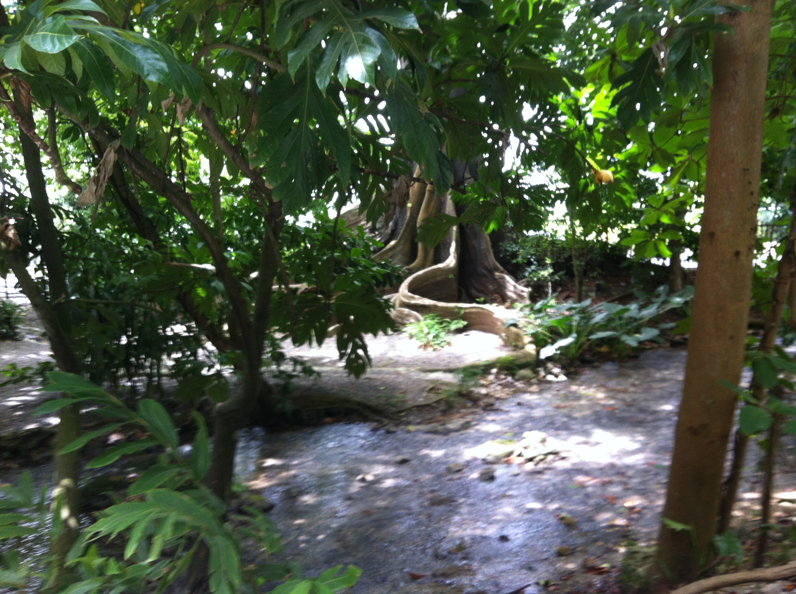 A stream under the cool canopy at Mystic Mountain in Ochi.