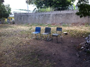 The backyard was large and beautiful, with several mango and ackee trees. Clothing fluttered on a line and these chairs were lined up, waiting for people to enjoy the breeze, I assume. It was not as bad as I would have imagined, this place where people go to expire.