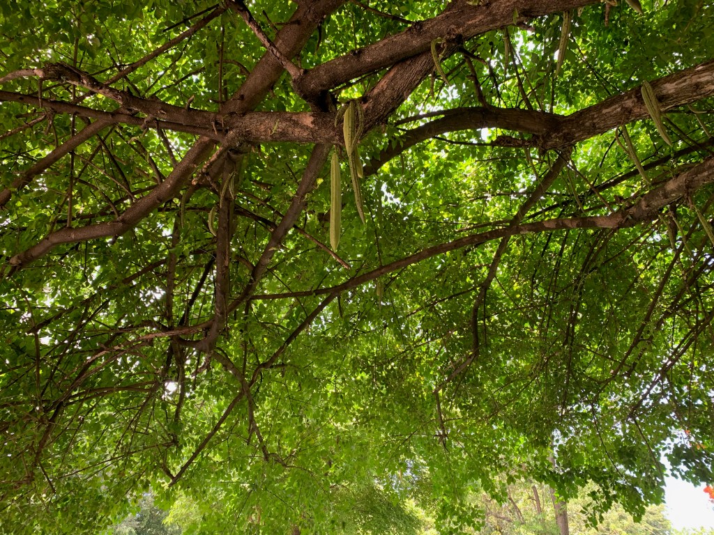 Look up, a cool, green ceiling…