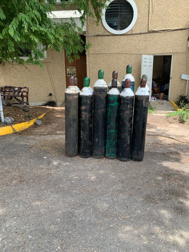 Oxygen Posted on August 25, 2021 by Kate Chappell Oxygen tanks sit outside the UWI Hospital on Monday, Aug. 23. Share this: Share on X (Opens in new window) X Share on Facebook (Opens in new window) Facebook More Share on Reddit (Opens in new window) Reddit Share on Tumblr (Opens in new window) Tumblr Share on Pinterest (Opens in new window) Pinterest Print (Opens in new window) Print Share on LinkedIn (Opens in new window) LinkedIn Email a link to a friend (Opens in new window) Email Like Loading... Related